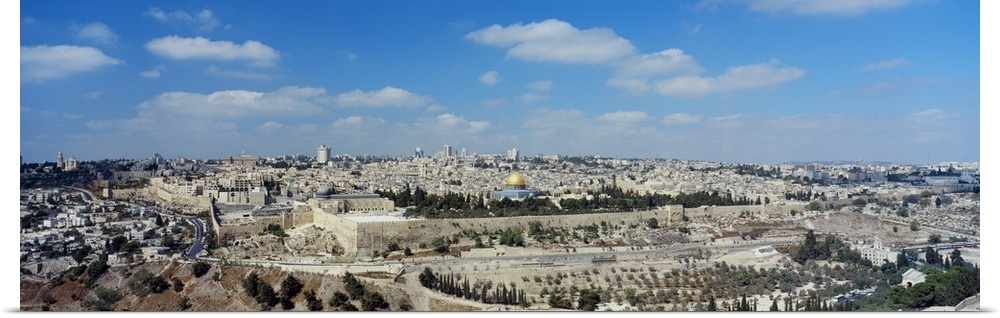 <p>Panoramic photograph of the ""Holy City"" located on a plateau in the Judean Mountains between the Mediterranean and the Dead Sea, it is one of the oldest cities in the world.</p>