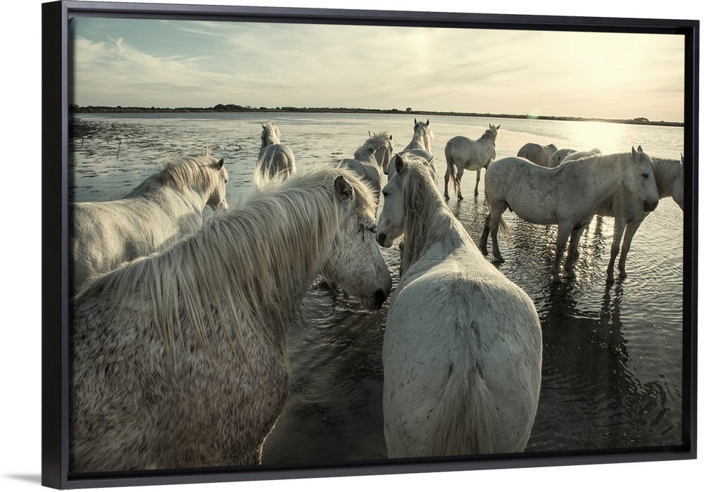 <p>The White Horses of the Camargue by the water in the South of France.</p>