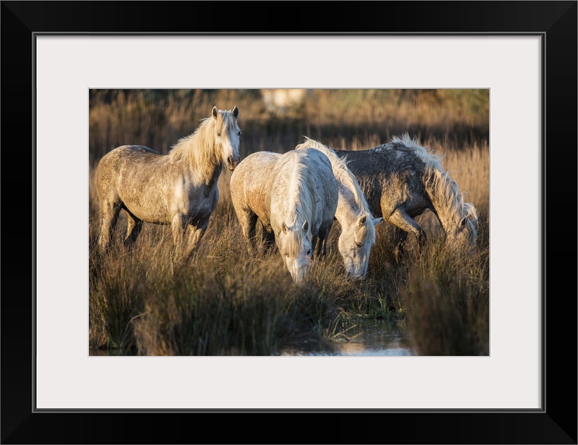 <p>The White Horses of the Camargue by the water in the South of France</p>