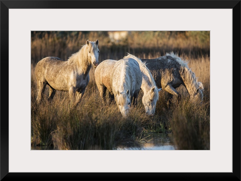 <p>The White Horses of the Camargue by the water in the South of France</p>