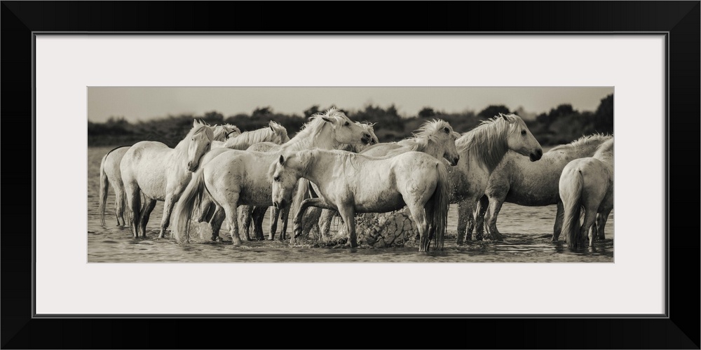<p>The White Horses of the Camargue in the water in the South of France</p>