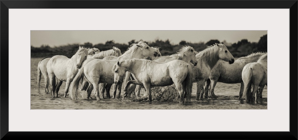 <p>The White Horses of the Camargue in the water in the South of France</p>
