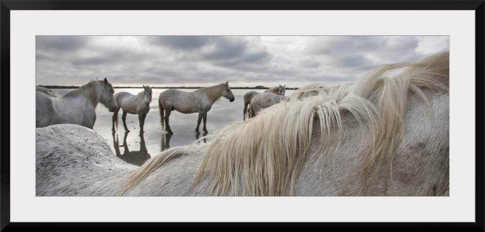 <p>The White Horses of the Camargue in the water in the South of France</p>