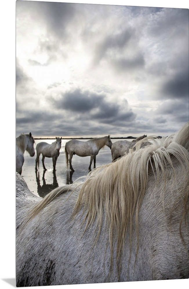 <p>The White Horses of the Camargue in the water in the South of France</p>