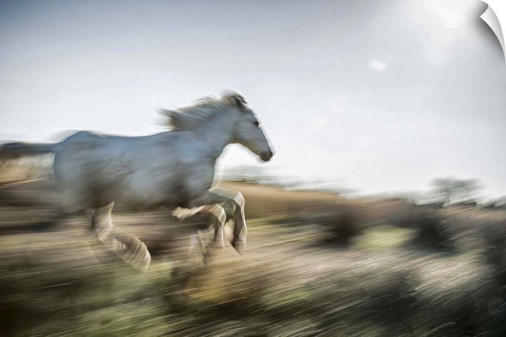 <p>The white horses of the Camargue running in the south of France</p>