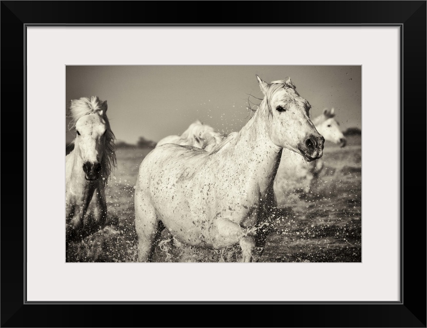 <p>The White Horses of the Camargue running in the water in the South of France</p>