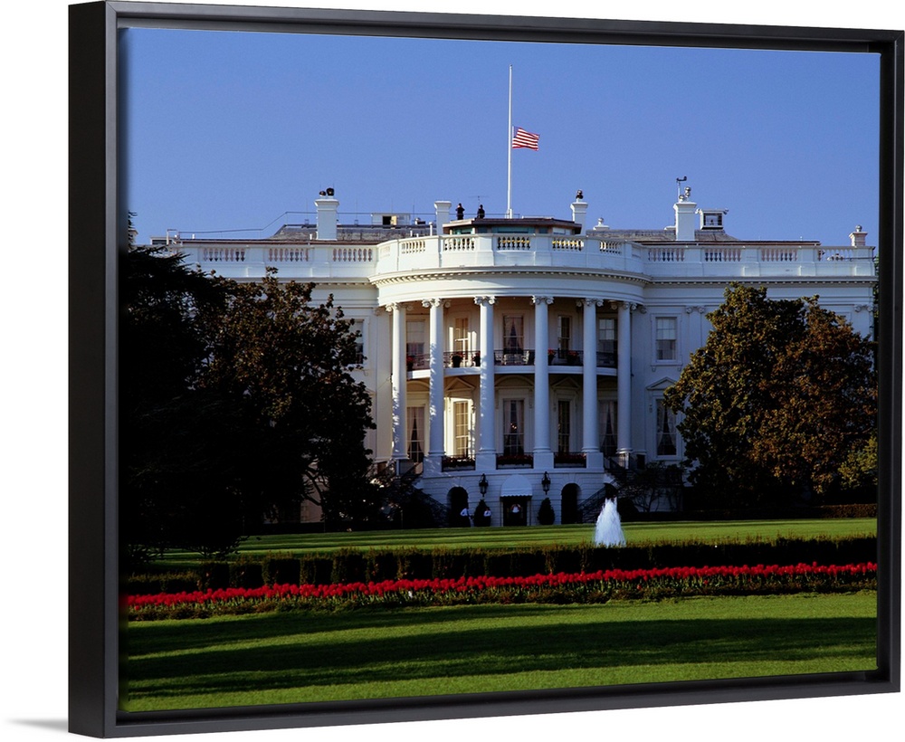 <p>The South Lawn of the White House, which is flying the US flag at half-mast.</p>