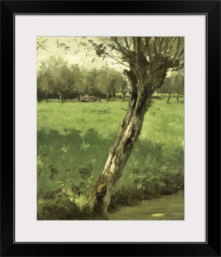 <p>The Willow, by Geo Poggenbeek, c. 1873-1903, Dutch oil painting. Tilted pollard willow next to a drainage ditch at the edge of a meadow.</p>