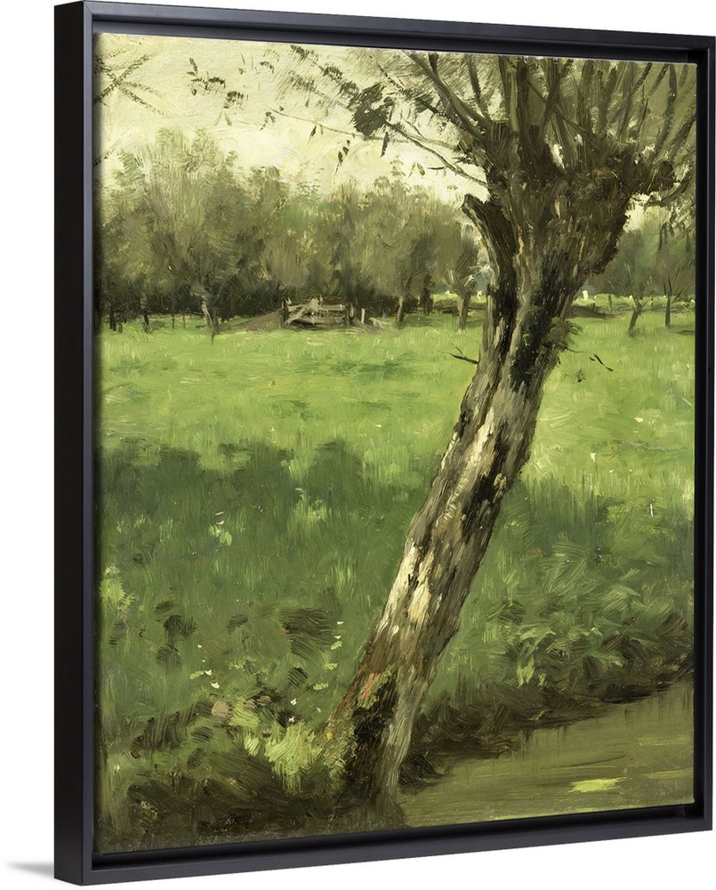<p>The Willow, by Geo Poggenbeek, c. 1873-1903, Dutch oil painting. Tilted pollard willow next to a drainage ditch at the edge of a meadow.</p>