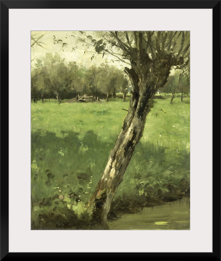 <p>The Willow, by Geo Poggenbeek, c. 1873-1903, Dutch oil painting. Tilted pollard willow next to a drainage ditch at the edge of a meadow.</p>