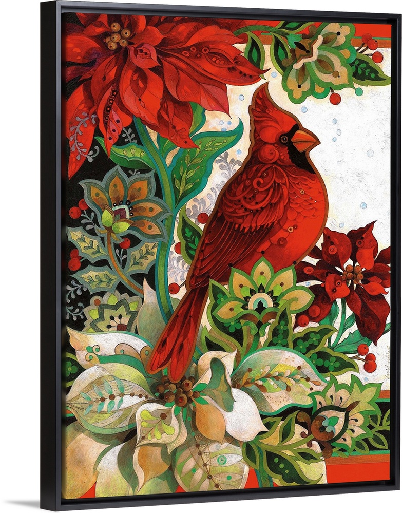 Art Contemporary Art Plants and Flowers Wildlife Florals Poinsettia David Galchutt Painting Wildlife Bird Cardinal