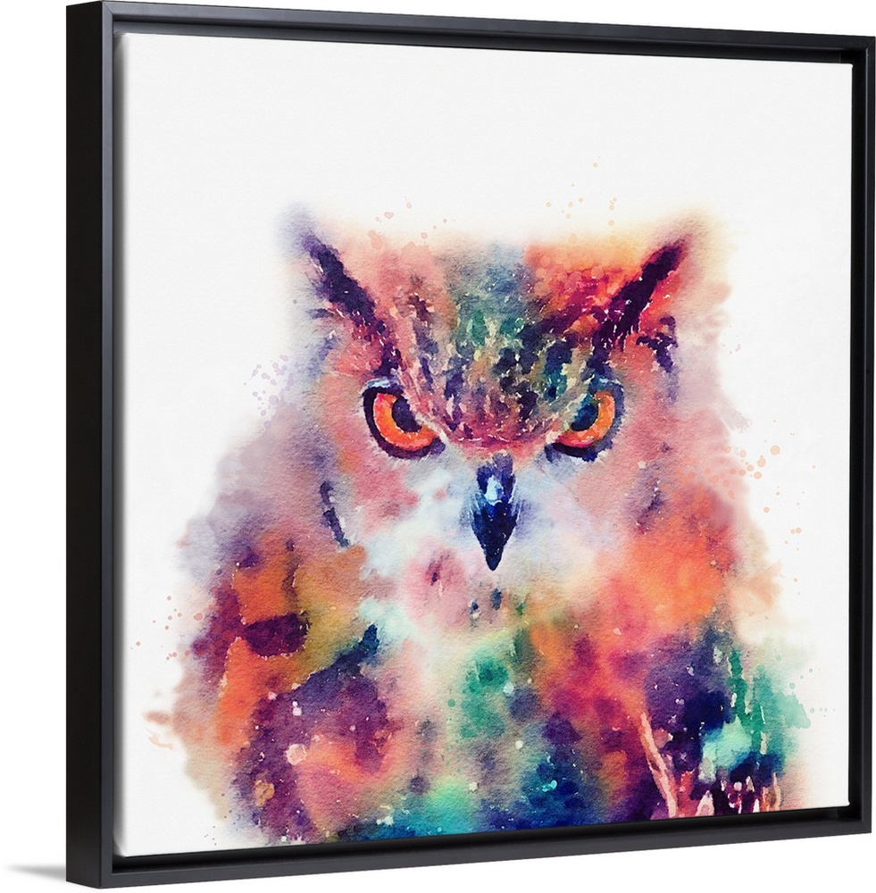 <p>A watercolor painting of an owl in vivid multi-colors.</p>