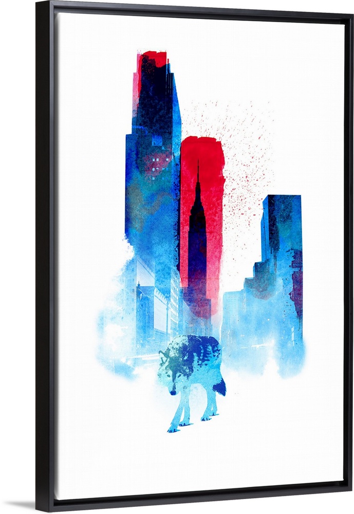 Art Blue Wall Art Cityscapes Contemporary Art Robert Farkas Graphic Art Wildlife Wolf