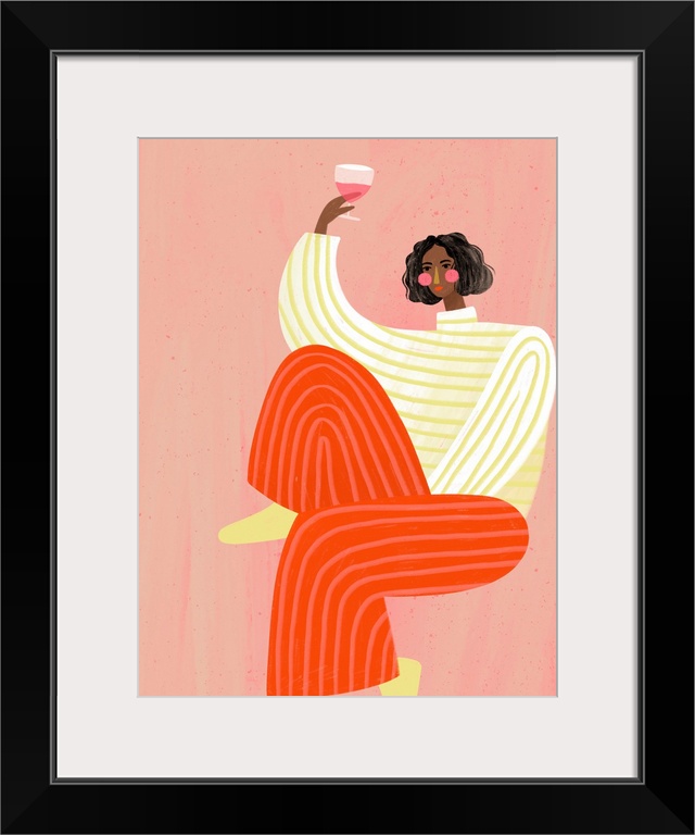 Art Contemporary Art Food and Drink Drinks Wine Graphic Art Bea Muller People Figurative Pink Wall Art