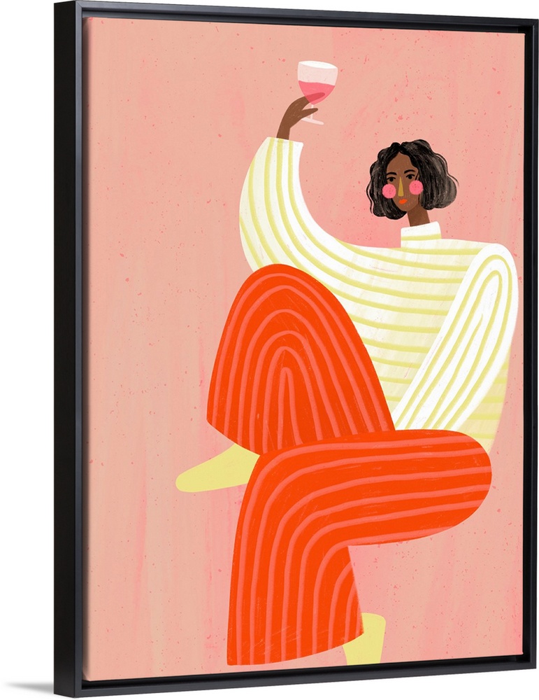 Art Contemporary Art Food and Drink Drinks Wine Graphic Art Bea Muller People Figurative Pink Wall Art