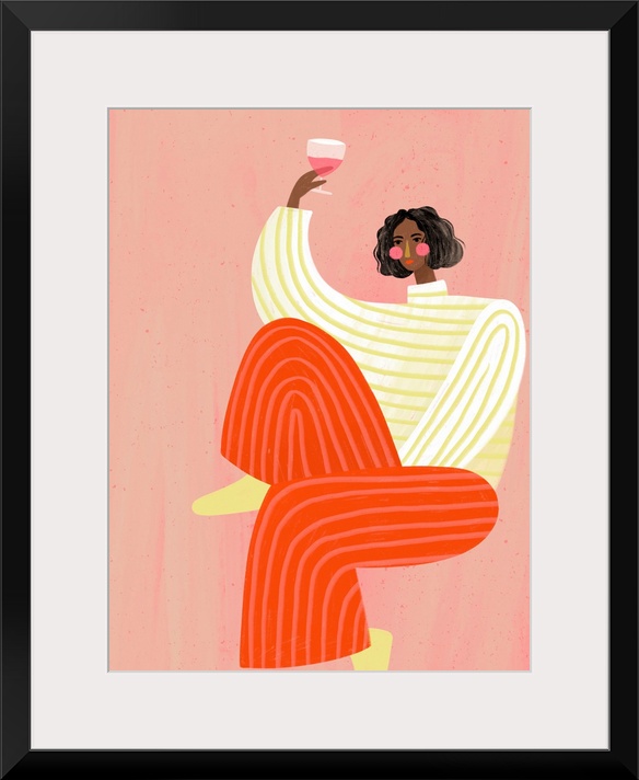 Art Contemporary Art Food and Drink Drinks Wine Graphic Art Bea Muller People Figurative Pink Wall Art