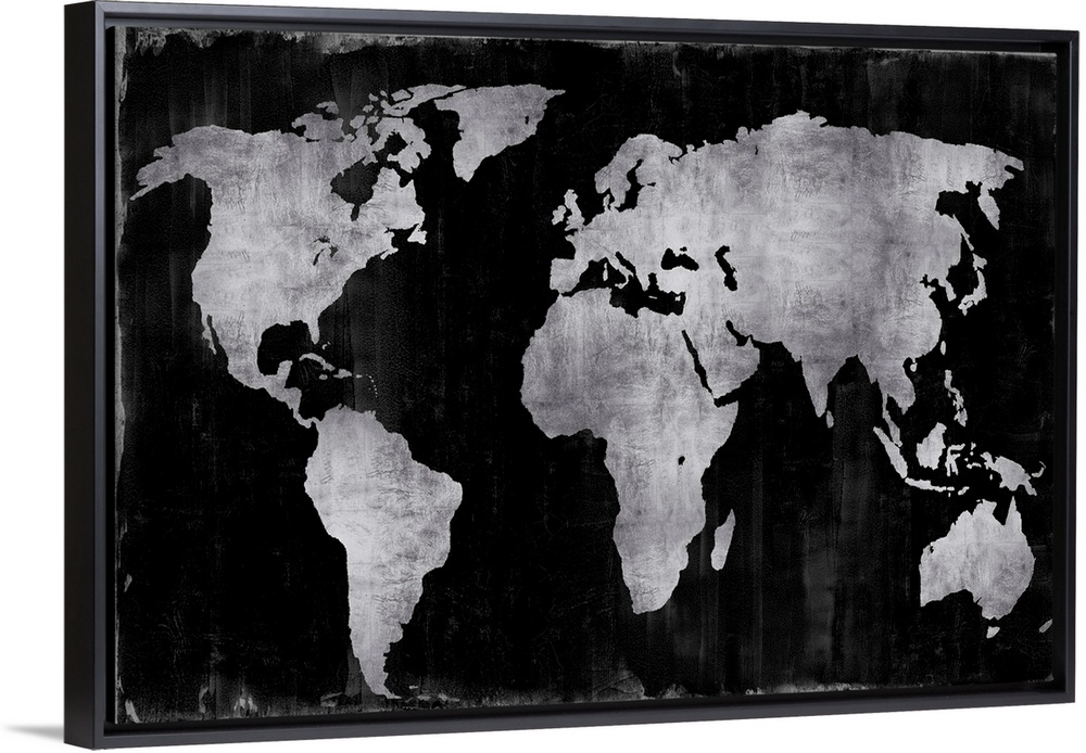 <p>World map in silver and black.</p>