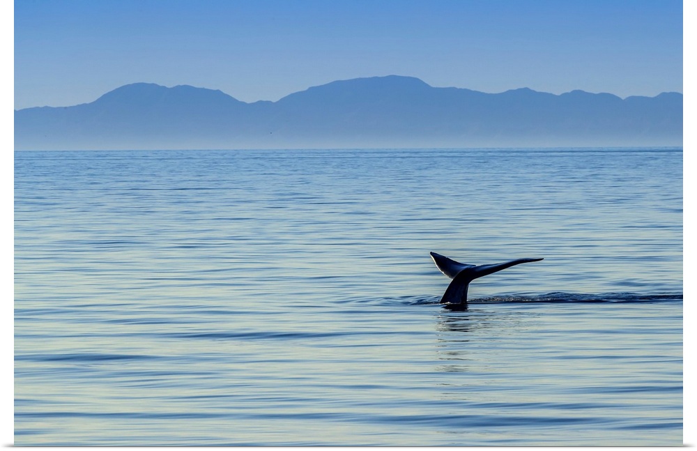<p>The world's largest animal, a blue whale raises its fluke out of the water.</p>
