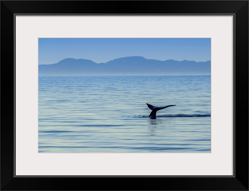 <p>The world's largest animal, a blue whale raises its fluke out of the water.</p>