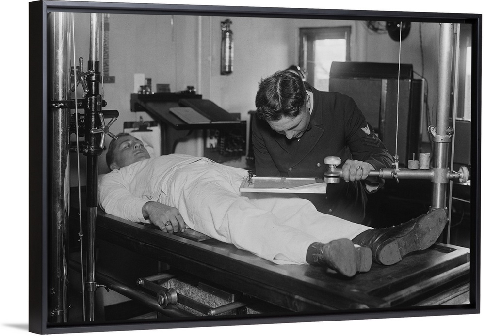 <p>The X-ray room aboard the hospital ship 'USS Comfort.' Photograph, c1919.</p>