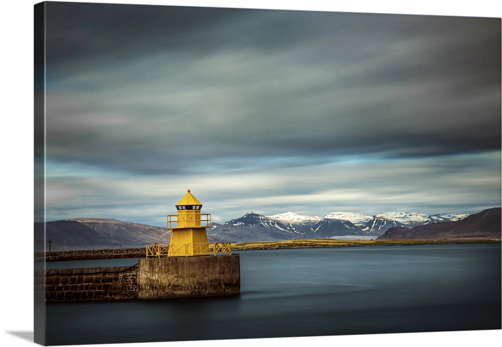 <p>The yellow lighthouse Nordurgardi at Reykjavik harbour.</p>