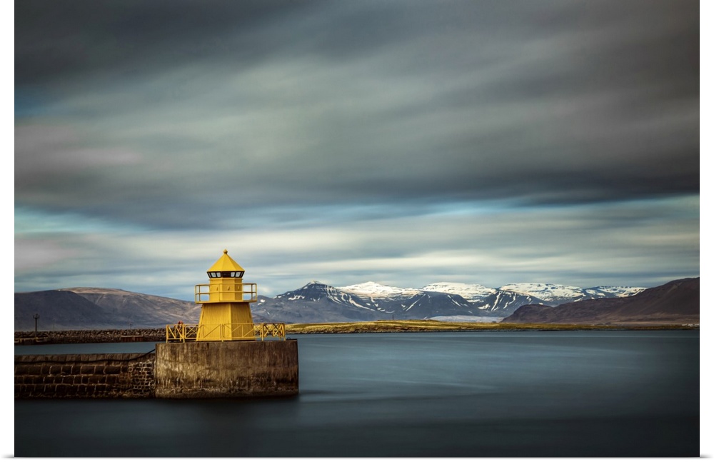 <p>The yellow lighthouse Nordurgardi at Reykjavik harbour.</p>