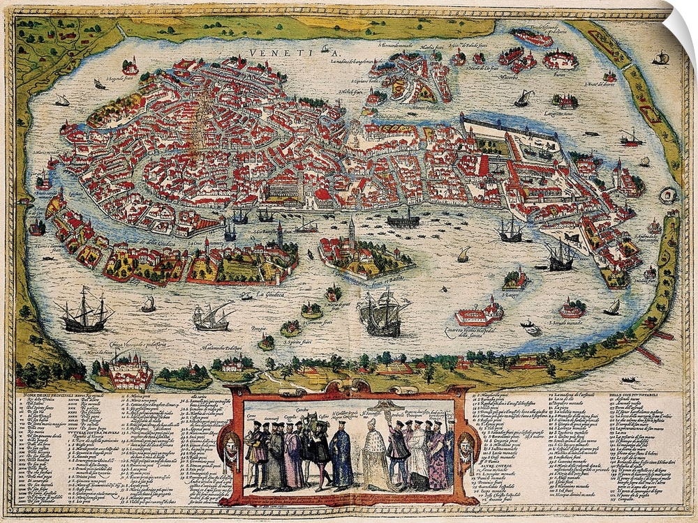 <p>Theatrum Orbis Terrarum", by Abraham Ortelius. The city of Venice. Printed in Antwerp by Christoph Plantinus (1588). Engraving. SPAIN. Salamanca. Salamanca University Library. . AISA/Everett Collection</p>