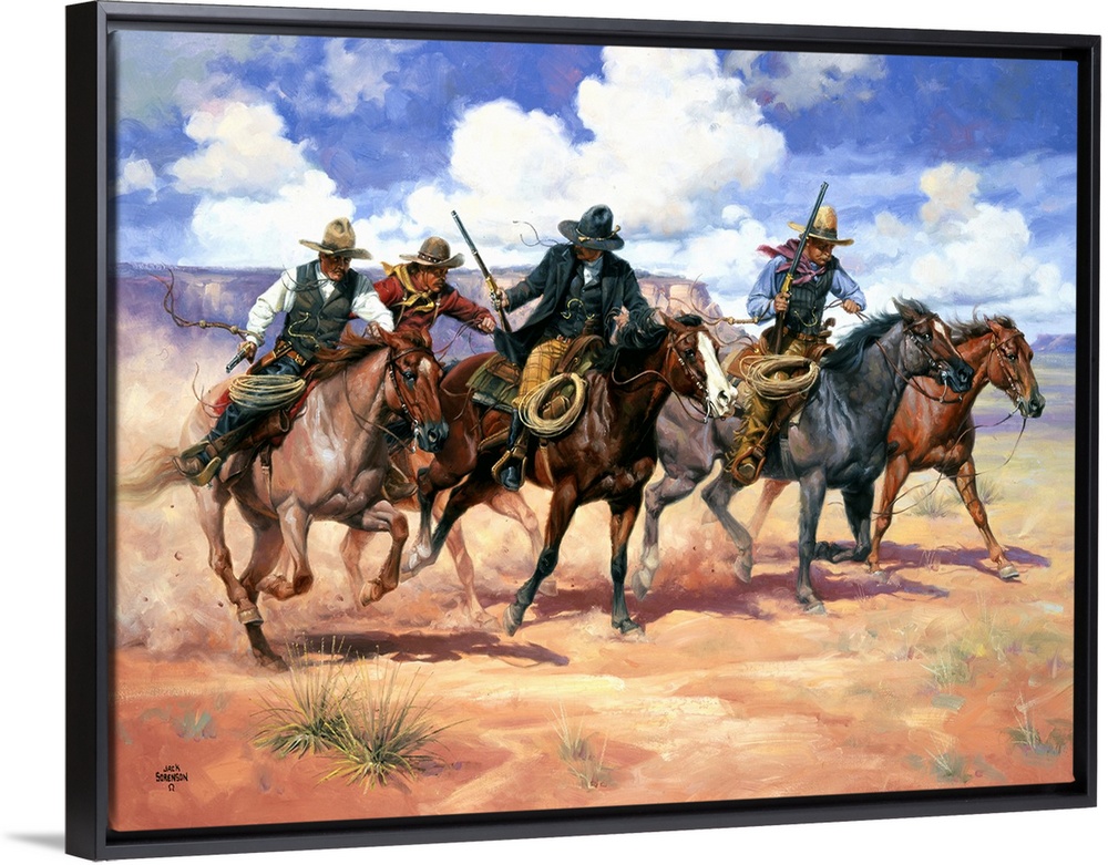 <p>Jack Sorenson’s art celebrates the Old West lifestyle and cowboy culture. He came of age on a dude ranch on the rim of Palo Duro Canyon. He worked as a stagecoach driver, horse trainer, and performance gunfighter before turning his attention to art. Sorenson has been a naturally gifted artist since he was a child and has been voted into the prestigious Cowboy Artists of America group. Sorenson’s paintings often feature horses and scenic landscapes of the Wild West.</p>