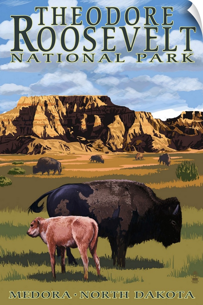 <p>Theodore Roosevelt National Park, Medora, North Dakota, Bison and Calf</p>