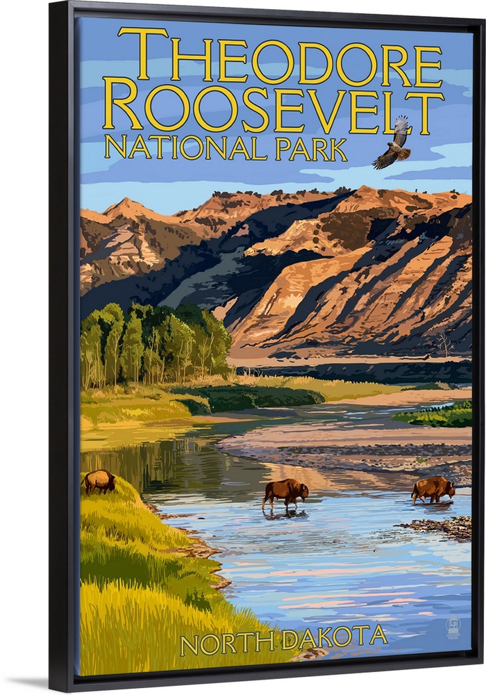<p>Theodore Roosevelt National Park, North Dakota, Bison Crossing River</p>