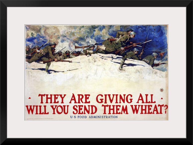 <p>'They are giving all - Will you send them wheat?' Lithograph by Harvey Dunn, 1918.</p>