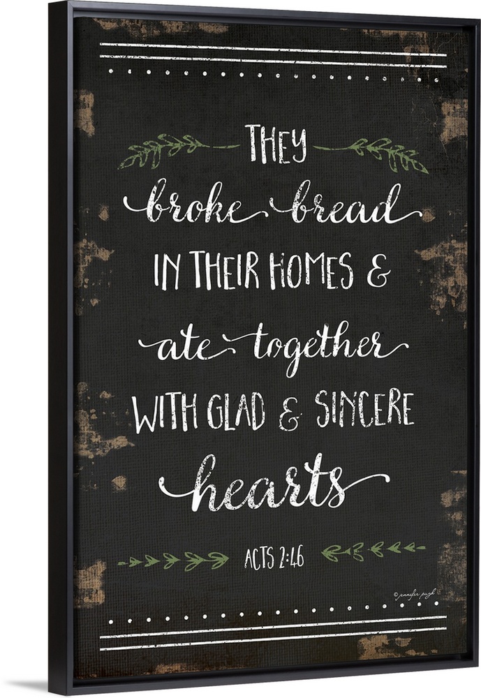<p>"They broke bread in their homes and ate together with glad and sincere hearts" Acts 2:46</p>