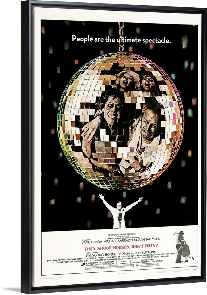 <p>THEY SHOOT HORSES, DON'T THEY?, US poster, (in disco ball) top from left: Suzannah York, Michael Sarrazin, bottom from left: Jane Fonda, Red Buttons, bottom: Gig Young, 1969.</p>