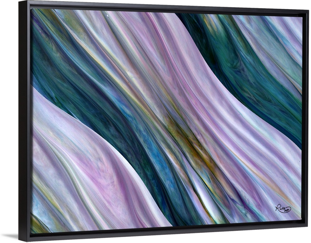 <p>Horizontal artwork in the style of folds of fabric in gradation of purple, blue and green.</p>