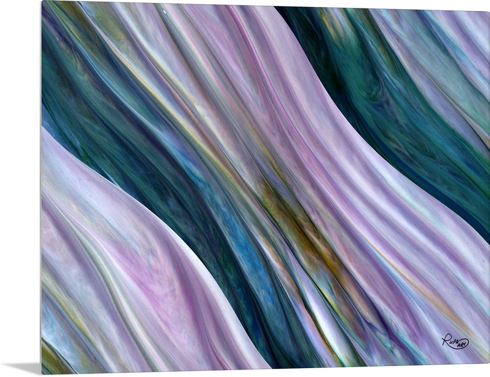 <p>Horizontal artwork in the style of folds of fabric in gradation of purple, blue and green.</p>
