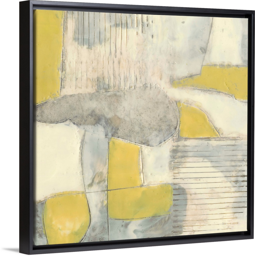 <p>Contemporary abstract painting using pale yellows and gray in geometric shapes.</p>