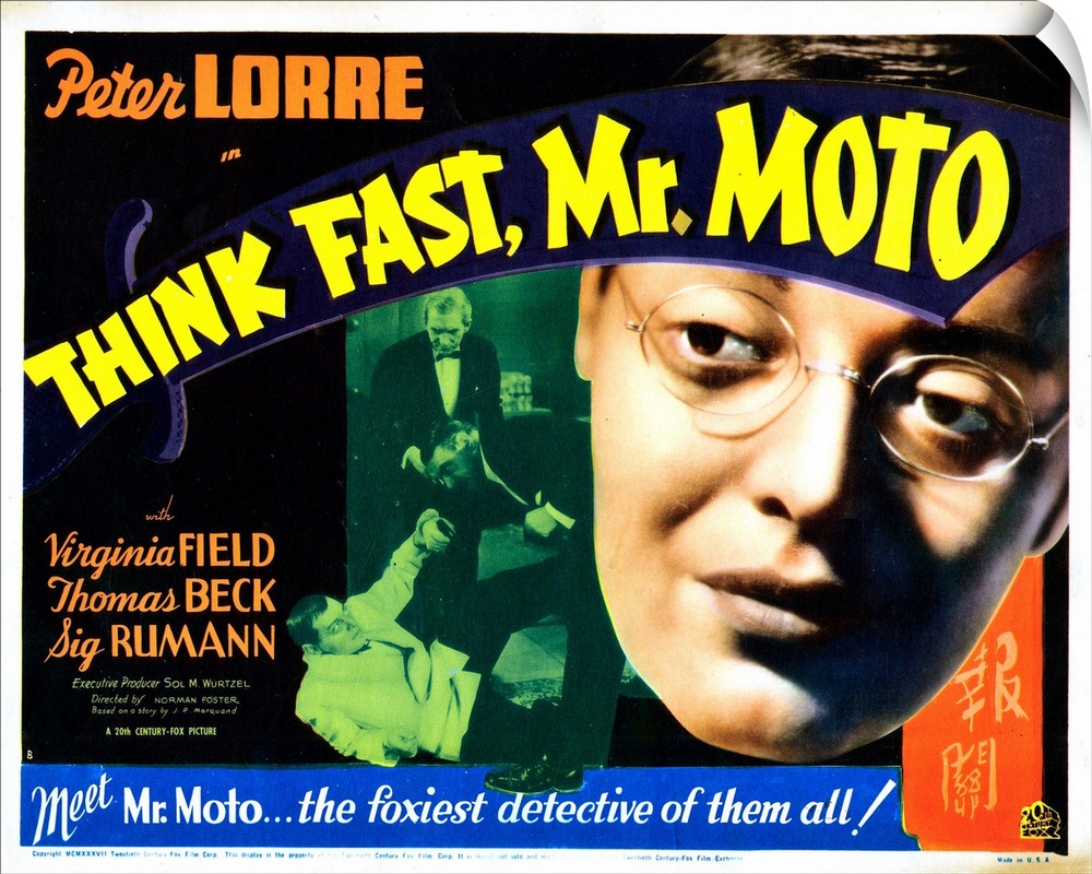 <p>Think Fast, Mr. Moto, Lobbycard, Peter Lorre (Left, And Large Face), Murray Kinnell (Back, Center), Sig Ruman (Inset, Right), 1937.</p>