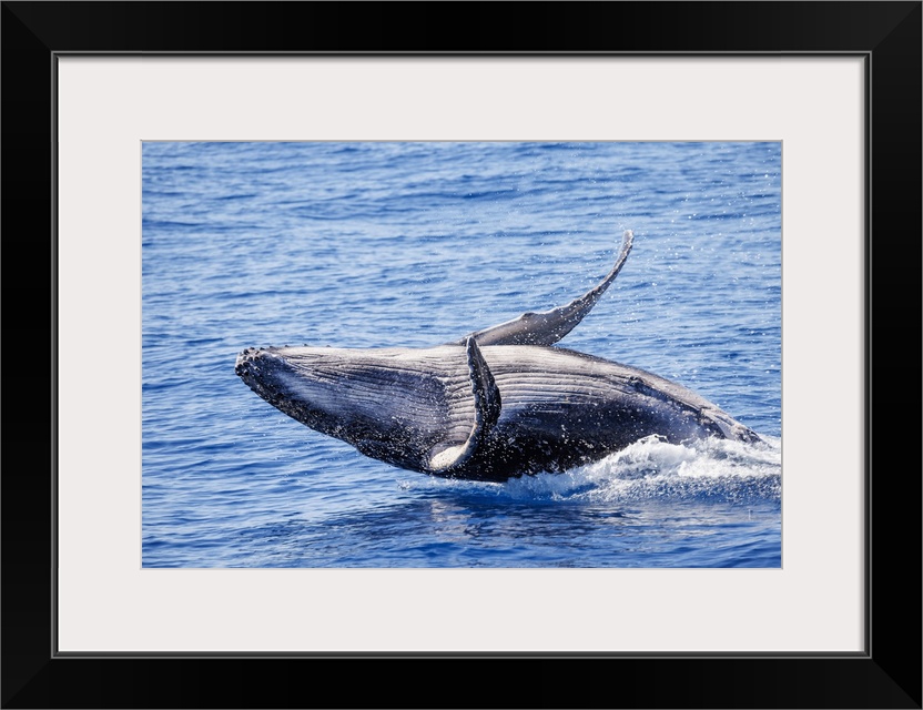 <p>This breaching humpback whale calf (megaptera novaeangliae) was born in the 2022 season off Maui, Hawaii, united states of America.</p>