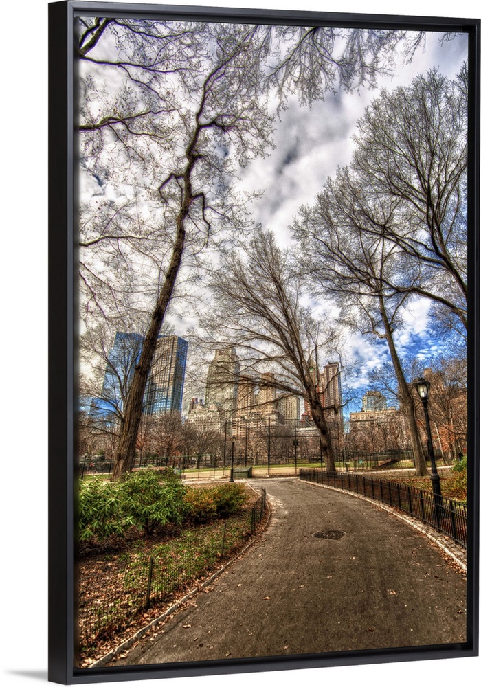 <p>This is a path in Central Park in New York City. The clouds were just breaking for the day and the city provided a great background through the trees over the baseball field.</p>