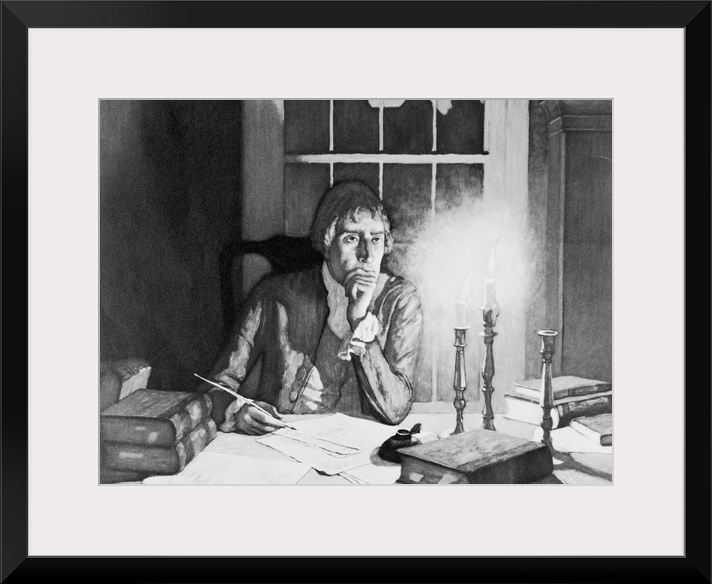 <p>Thomas Jefferson drafting Declaration of Independence; painting by N.C. Wyeth.</p>
