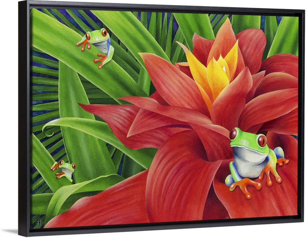 Art Contemporary Art Plants and Flowers Wildlife Florals Tropical Flowers Painting Red Wall Art Carolyn Steele Watercolor Wildlife Frog