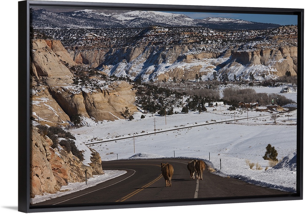 <p>USA, Utah, Boulder, cow welcoming comittee, Rt.12, winter</p>