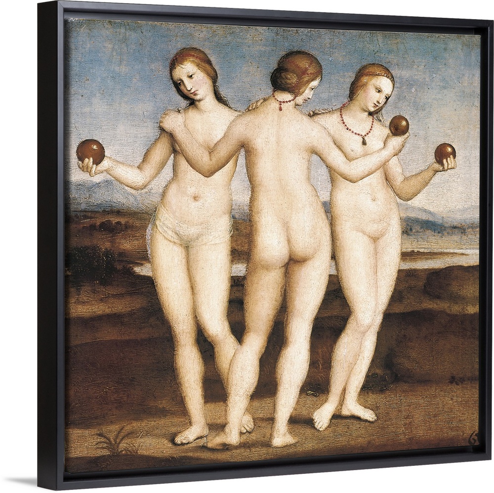 <p>Raphael (1483-1520). The Three Graces. 1504-1505. It depicts the Charites, aka the Three Graces: Aglaea, Euphrosyne and Thalia. Renaissance art. Cinquecento. Oil on wood. FRANCE. Chantilly. Musee Conde (Conde Museum). -</p>