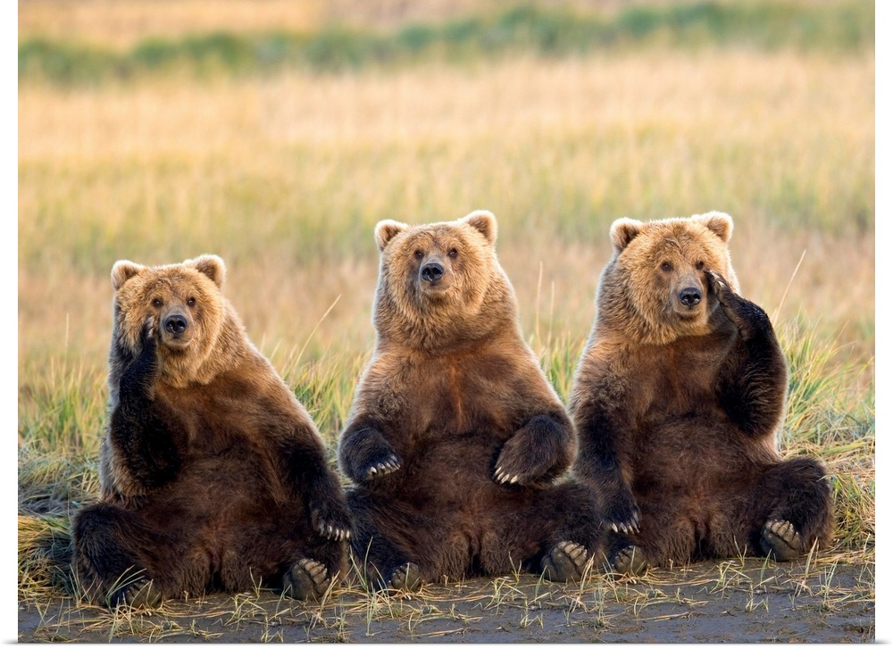 <p>Brown bears sitting up with each other contemplating the mysteries of the universe or what to have for lunch in this nature photograph.</p>