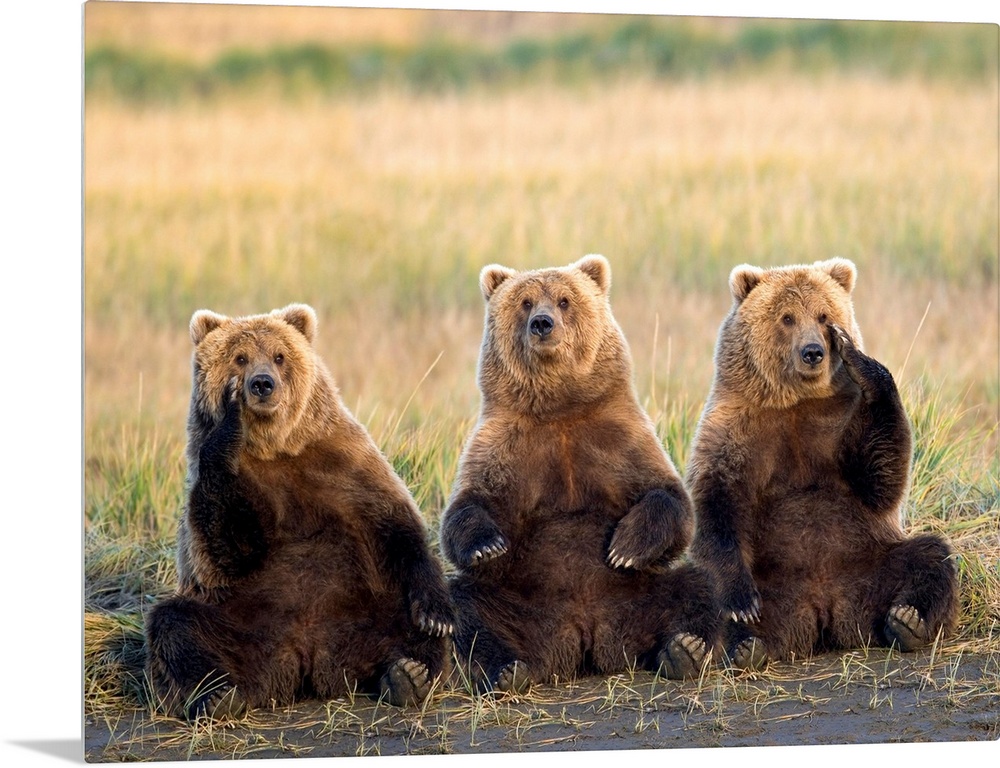 <p>Brown bears sitting up with each other contemplating the mysteries of the universe or what to have for lunch in this nature photograph.</p>