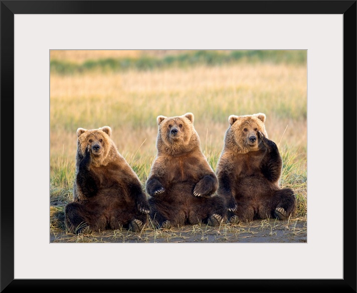 <p>Brown bears sitting up with each other contemplating the mysteries of the universe or what to have for lunch in this nature photograph.</p>