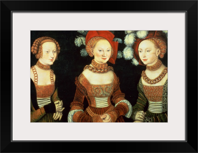 <p>XAM72406 Three princesses of Saxony, Sibylla (1515-92), Emilia (1516-91) and Sidonia (1518-75), daughters of Duke Heinrich of Frommen, c.1535 (panel); by Cranach, Lucas, the Elder (1472-1553); oil on panel; 62x89 cm; Kunsthistorisches Museum, Vienna, Austria; German, out of copyright</p>