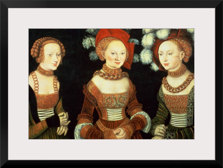<p>XAM72406 Three princesses of Saxony, Sibylla (1515-92), Emilia (1516-91) and Sidonia (1518-75), daughters of Duke Heinrich of Frommen, c.1535 (panel); by Cranach, Lucas, the Elder (1472-1553); oil on panel; 62x89 cm; Kunsthistorisches Museum, Vienna, Austria; German, out of copyright</p>