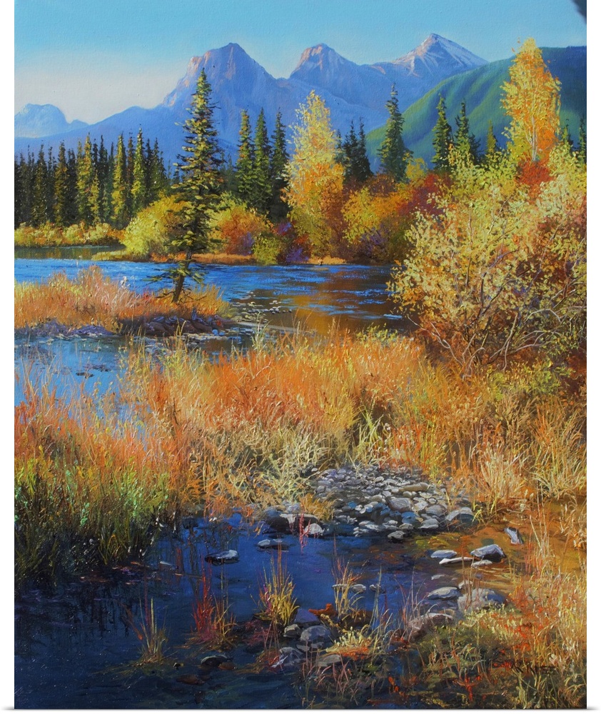 Art Contemporary Art Andrew Kiss Landscapes Mountains River, Creek and Stream Trees Painting