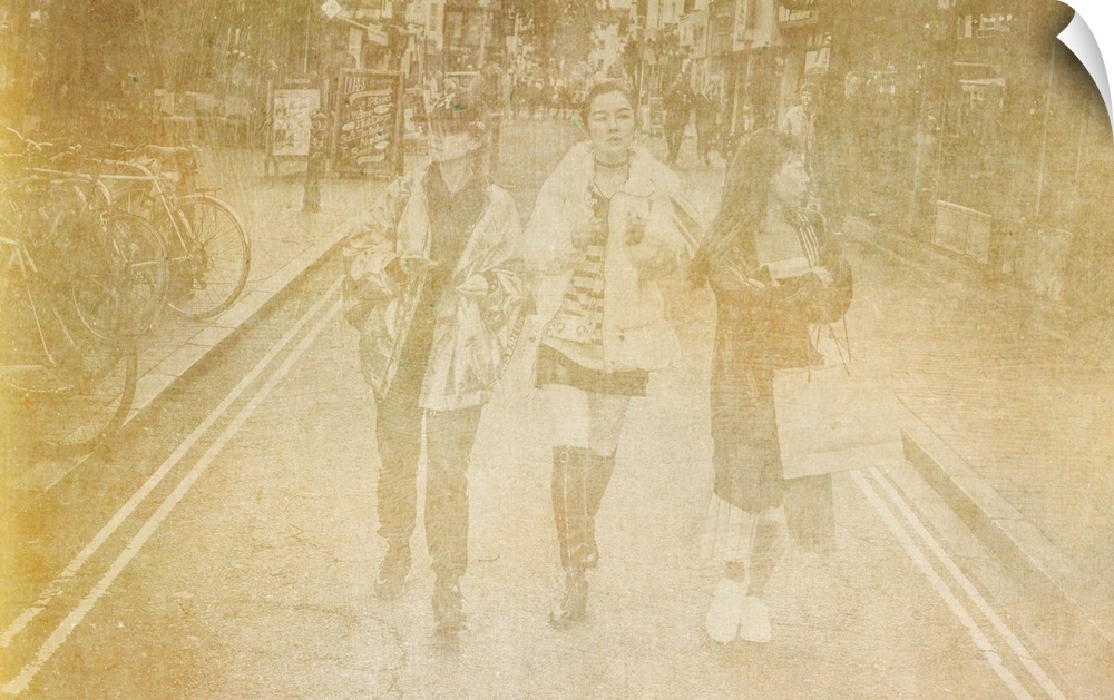 <p>Three asian females walking together in the Brighton Lanes in England.</p>